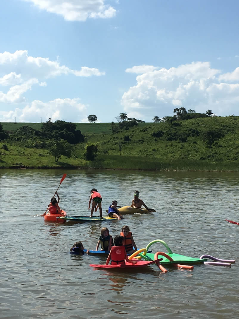 As duas casas disponíveis na fazenda hospedam os alunos de forma aconchegante. Cada casa conta com 06 quartos que acomodam até 07 pessoas cada. A tulha antiga foi transformada em sala de jogos, dentro do paiol foi construída uma parede de escalada e um escorregador e no jardim, um brinquedão com tirolesa e uma cama elástica.