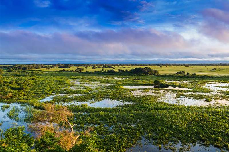 O Pantanal é a maior planície alagável do mundo. É nele que a vida explode e colore matas, rios e lagos com os tons das aves e peixes e com a vida abundante dos animais. Isto porque o Pantanal é uma das maiores concentrações de fauna selvagem: uma infinidade de espécies de aves, jacarés, cervos, capivaras e outros animais transformam a paisagem num espetáculo, um fascinante viveiro natural. Aqui, em programa especial em típica fazenda pantaneira, temos cavalgadas, caminhadas e safáris fotográficos de barco.